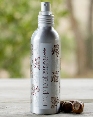 100% oli d’avellana ecològic extra verge de primera premsada en fred, oli de camamilla, oli de calèndula.